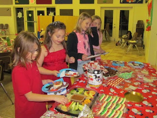 The first game was a present wrapped many times, each girl got to unwrap it once then passed it on for the next girl to unwrap...